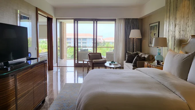 Many rooms feature private balconies with jacuzzis, while the villa options include private pools and butler service, offering ultimate privacy and indulgence.
