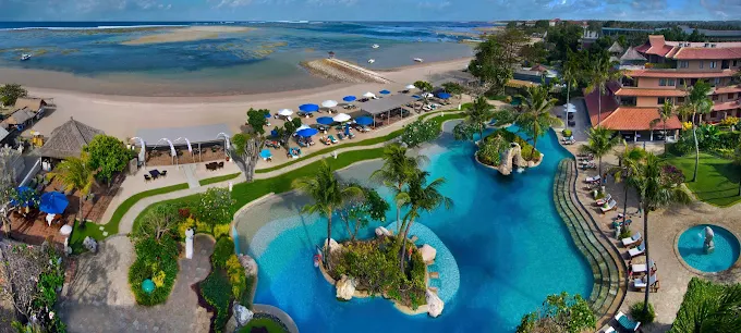 With 188 elegant rooms and suites, guests can unwind in spacious comfort with a touch of island sophistication. The resort features multiple dining venues, a beachfront pool, a relaxing spa, and easy access to water sports along Tanjung Benoa’s famous coastline.